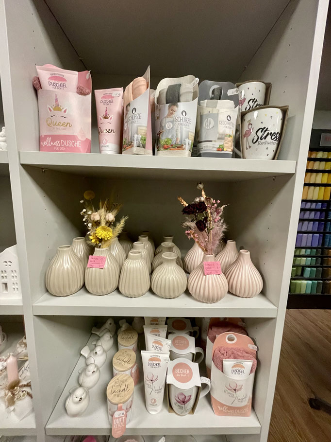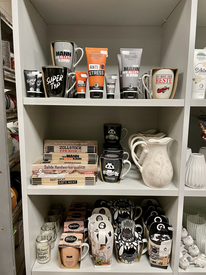 Bei uns finden Sie immer eine grosse Auswahl an Geschenkartikeln. Von einer Tasse mit lässigem Spruch über Handcréme, Duschgel, Bodylotion bis hin zum coolen Zollstock für den Mann.